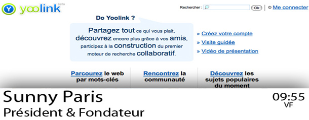 Yoolink , entre le social bookmarking et le moteur de recherche, voici l’interview de son créateur, qui va nous faire un peu découvrir la logique derrière ce produit, ses ambitions, son business model, le parcours de Sunny, et vous pourrez voir également la version Iphone de Yoolink .