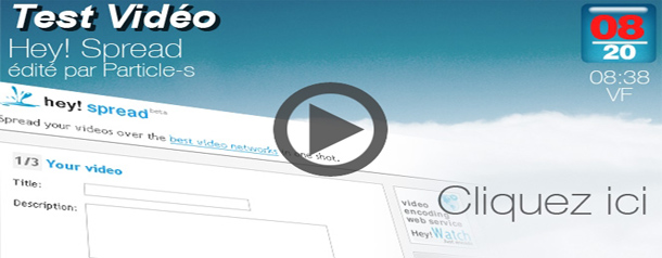 Ah oui c’est vraiment une déception, parce que depuis HeyWatch! on aimait l’application et leur manière de travailler, car Heyspread! répond a un besoin que je trouve énorme pour chacun d’entre nous…Comment faire circuler une vidéo sur plusieurs plateformes différentes…Oui c’est vraiment un dilemme, comment rendre sa vidéo visible sur le net quand on peut voir la multiplication de toutes les plateformes de partages vidéo?Et bien HeySpread! nous proposait de soumettre une vidéo a tout un tas de plateforme en même temps, donc une vraie bonne idée….sauf que…ça marche pas (ou très mal) c’est très très lent et limite on nous lache dans la nature avec des messages du types “si vous n’y arrivez pas allez voir la faq de la plateforme’… bref pas très sympa, le mieux c’est encore de regarder cette vidéo!