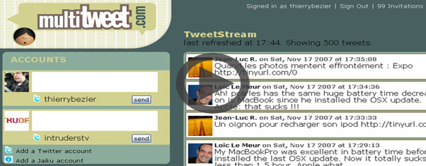 i[Remarque : Doug Clinton, le créateur de Multitweet n'est autre que le CTO de Intruders TV, il a créé la première version suite à des besoins que nous avons eut pour gérer nos comptes twitter tout simplement...]i